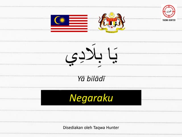 اي يد لب Negaraku Yā bilādī Disediakan oleh Taqwa Hunter. Get Lirik Lagu Negaraku Dalam Bahasa Arab MP3 Free Of Charge in Mp3 Media uploaded by Ayob Hussin. لاڬو نڬاراکو bahasa Tionghoa.