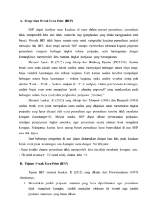 Analisis Pulang Pokok Break Even Point Disusun Oleh